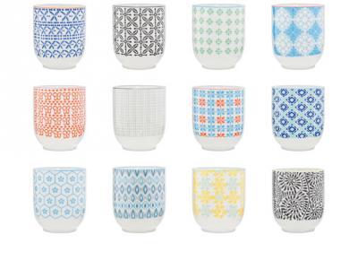 Porseleinen Happy Mix bekers van Cosy & Trendy die joie de vivre uitstralen en geometrische patronen en grafische elementen hebben om à volonté te mixen & matchen. Ook kan er veelvuldig geswitcht worden al naargelang de stemming.HAPPY MIX B BEKER D7.2XH8.5CM 10ASSORTI