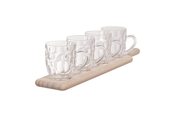 TABLE >> Bierglas >> Cosy & Trendy >> Degustatie Set Plank - 4 Pinten 285ml 48x10xh1.8cm - Glas D7.5x11.5xh9cm
