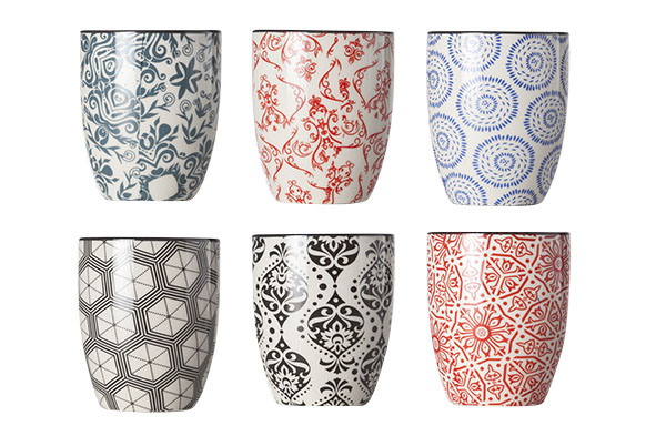 De Delirio bekers van Cosy & Trendy, een vrolijk assortiment kleuren en motieven, brengen sfeer aan tafel. Deze set bevat zes bekers zonder oor, elk met een verschillend gekleurde print. Gemaakt uit aardewerk.DELIRIO MINI BEKER D5.6XH6.7CM 6 ASS