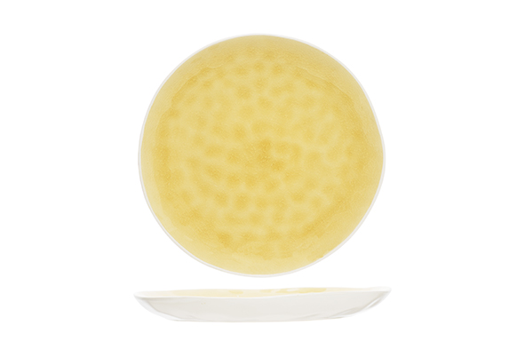 Deze drie Spirit Mustard borden hebben een subtiele craquelé look, bedekt met een gladde en blinkende glazuurlaag. De pastelkleur, de matte witte buitenkant en de ongedwongen natuurlijke vormen zijn een frisse en vrolijke combinatie. De borden zijn gemaakt uit aardewerk.- afmetingen: D: 27 cm