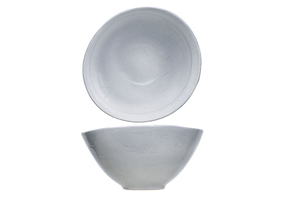 De Cosy & Trendy Theodora Grey slakom is een aardwerken schaal met een uniek uitzicht. Eerst en vooral valt de kleur op: zacht blauwgrijs met donkerdere spikkels en randen. Daarnaast zijn ook de vorm en de afwerking opmerkelijk. De kom is niet perfect rond en heeft een ondiep reliƫf in het oppervlak en asymmetrische boorden.