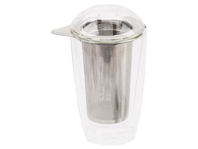 Dankzij de isolerende werking van de dubbele wand houdt dit glas uw thee langer warm en zult u uw handen niet meer verbranden. Het deksel zorgt nog voor een bijkomende isolerende werking. Het glas is voorzien van een grote filter voor uw verse thee, die u na enkele minuten makkelijk kunt uithalen dankzij het lipje. Vaatwasmachine- en microgolfovenbestendig.