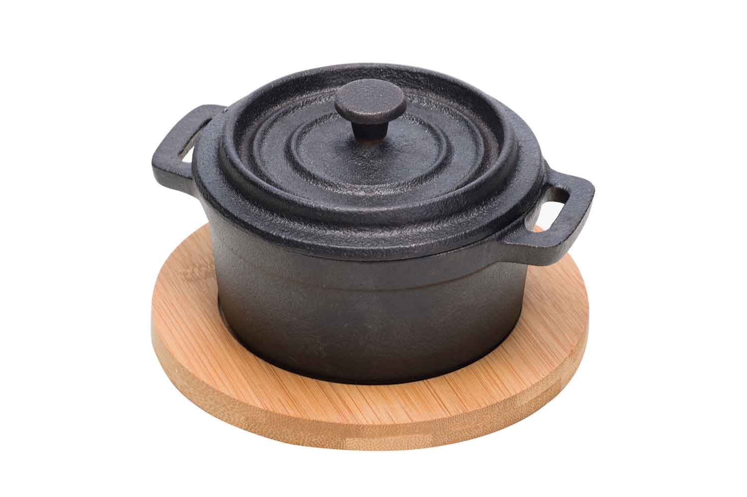 Cosy & Trendy Gietijzer Potje 13,5x10,5xh8cm Op Bamboe Plankje