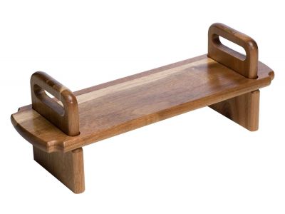Een leuke en handige manier om etenswaren op tafel te presenteren. Deze mooi acaciahouten serveerplank staat op twee poten en heeft twee handige handvaten om hem op een comfortabele en veilige manier te dragen. De pootjes/handvaten kunnen makkelijk losgemaakt worden zodat het geheel makkelijk op te bergen is. Reinig met warm water, een vochtige doek en mild reinigingsmiddel. Droog onmiddellijk af. Nooit laten weken in water.