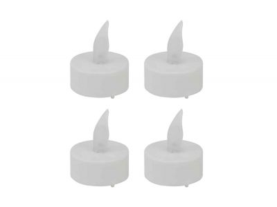 Maak het gezellig met deze flikkerende en veilige theelichtjes! Batterijen inbegrepen.THEELICHT SET4 LED WIT OP KAART