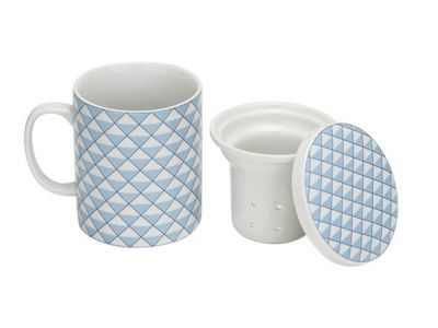 Gebruiksaanwijzing: doe uw theeblaadjes of kruiden in de centrale filter en zet de filter in het theekopje. Vul de filter met heet, niet-kokend water. Plaats het deksel op de filter. Laat de thee gedurende ongeveer 4 minuten trekken. Haal de filter uit het kopje, zodra de thee op smaak is en geniet van uw heerlijke thee.TISANIERE DECO BLAUW D8XH10,5CM 28CL