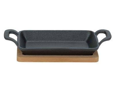 KITCHEN >> Ovenschotel >> Cosy & Trendy >> Gietijzer Tapasschaal 22.5x10xh5cm Rechthoek - Op Bamboe Plank