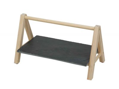 Presenteer gebakjes of andere kleine lekkernijen op deze charmante etagère uit hout en leisteen. Het leistenen plateau van 25 op 14 cm steunt op de houten standaard maar is niet vastgemaakt, zodat u het kunt afnemen om schoon te maken.ETAGERE 1LAAG LEISTEEN-HOUTEN STAND