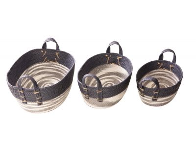 Productbeschrijving:MAND SET3 WIT BLAUW/GRIJS 40X30XH16CM
