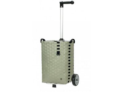 De Unus Shopper® is gemaakt van lichtgewicht aluminium. De innovatieve 3-weg-systeemgreep kan met een druk op de knop in drie verschillende posities worden versteld en ondersteunt zo een natuurlijke handhouding. De telescoopsteel is traploos verstelbaar en kan optimaal worden aangepast aan de lichaamslengte. Het chassis kan eenvoudig aan een fiets worden gekoppeld met behulp van het Andersen-koppelingssysteem. Met een totaal draagvermogen van 40 kg zijn ook zware lasten geen probleem voor de Unus Shopper®.