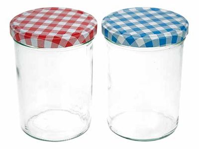 KITCHEN >> Inmaakglazen en -bokalen >> Cosy & Trendy >> Confituurpot Set6 Transparant 44cl 8,5cm Deksels: 3x Blauw-wit + 3x Rood-wit