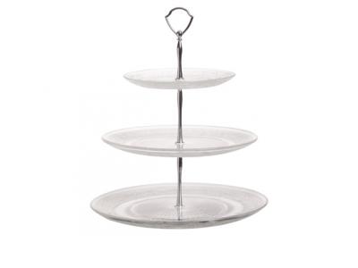Wilt u eens verrassend uit de hoek komen met de presentatie van uw pralines, koeken en gebak? Dan is deze unieke glazen etagère zeker iets voor u! De etagère heeft een uitgesproken vintage look dankzij de sierlijke motieven aan de onderkant van de glazen plateaus. Bovendien is de etagère voorzien van een ringetje zodat hij ook erg gemakkelijk en veilig te verplaatsen is. Hoog tijd voor wat heerlijke ouderwetse lekkernijen!RETRO ETAGERE MET 3 NIVEAUS D18-25-29CM