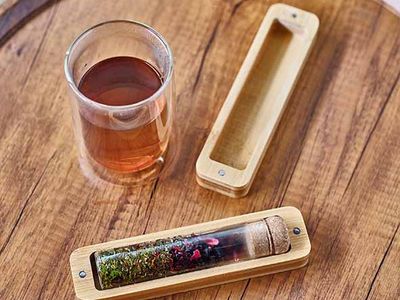 TABLE >> Theefilter >> Cosy & Trendy >> Thee Infuser Borosilicaat -in Bamboe Box D2,9xh14,6cm - Met Kurkstop