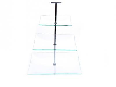 Hedendaagse, ultrastrakke etagère met drie niveaus uit prachtig blinkend glas en unieke staander. Voor een smaakvolle presentatie van uw gebakjes, snoepjes en chocolade bij een heerlijk kopje koffie of thee.ETAGERE 25-20-15XH30CM GLAS 3NIVEAUS
