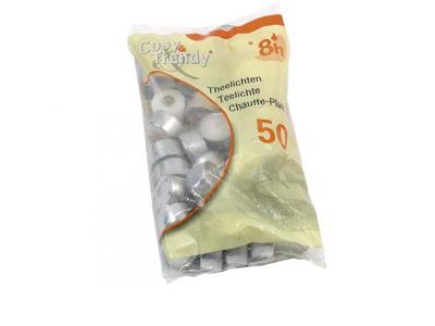 Kwaliteitstheelichten. 90% paraffine en 10% styreen. Door het hoog paraffinegehalte branden deze kaarsen langer, stabieler en verspreiden ze minder geur.THEELICHT 8H SET50 WIT M/HULS