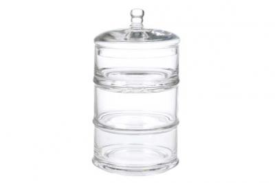 Deze glazen bonbonnière bestaat uit drie stapelbare presenteerschaaltjes. Zoetigheden zoals koekjes, gebakjes en snoep zien er in deze bonbonnière heel aantrekkelijk uit. Tip: u kunt de bonbonnière ook vullen met chips en borrelnootjes. Of gebruiken als decoratie en vullen met dennenappels of kerstballen.