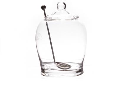 OLIJFPOT MET LEPEL D7XH14CM GLAS-INOX