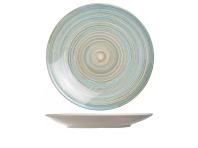 Het Cosy & Trendy Turbolino bord heeft een unieke identiteit: geverfde blauwe en bruine strepen in een spiraalvorm geven het een mediterraanse trek. Het bord uit aardewerk heeft een eenvoudige zachte vorm en is voorzien van een prachtig glanzende glazuurlaag.TURBOLINO BLAUW PLAT BORD D27CM