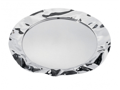 Ronde schaal in gepolijst roestvrij staal 18/10 H: 3cm - D: 44cm Designer: Lluís Clotet