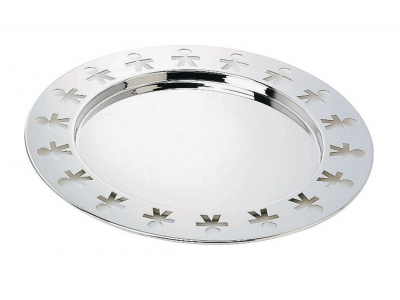 Ronde serveerschaal met geperforeerde boord in gepolijst roestvrij staalDesigner: King-KongD: 40cm