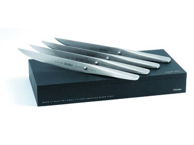 Chroma Type 301 Steakmessen, Set Van 4 Stuks Set van 4 steakmessen die niet gekarteld zijn waardoor u ze zelf kunt slijpen. De steakmessen zijn 12 cm groot. In de unieke messencollectie van Chroma TYPE301 Design by F.A. Porsche is de greep gemaakt van 18/10 roestvrij staal en het lemmet van hoogwaardig Japans staal type 301. Dat maakt het mes bijzonder geschikt als keukengereedschap. Alle messen worden met de hand geslepen door een meesterslijper. De snede van het mes heeft de traditionele Japanse V-vorm, wat het mes uiterst scherp maakt en waardoor het ook lang scherp blijft. Een groeiende schare topkoks hebben hun liefde verklaard aan de creatie van F.A. Porsche. ,... Onderhoud Deze messen mogen, net als andere koksmessen, niet in de vaatwasser. Ze zijn heel hygiënisch en gemakkelijk te onderhouden omdat ze geen naden hebben. Wassen in warm water en afdrogen na gebruik volstaat. In de unieke messencollectie van Chroma TYPE301 Design by F.A. Porsche is de greep gemaakt van 18/10 roestvrij staal en het lemmet van hoogwaardig Japans staal type 301. Dat maakt het mes bijzonder geschikt als keukengereedschap. Alle messen worden met de hand geslepen door een meesterslijper. De snede van het mes heeft de traditionele Japanse V-vorm, wat het mes uiterst scherp maakt en waardoor het ook lang scherp blijft. Een groeiende schare topkoks hebben hun liefde verklaard aan de creatie van F.A. Porsche. ,... Onderhoud Deze messen mogen, net als andere koksmessen, niet in de vaatwasser. Ze zijn heel hygiënisch en gemakkelijk te onderhouden omdat ze geen naden hebben. Wassen in warm water en afdrogen na gebruik volstaat.