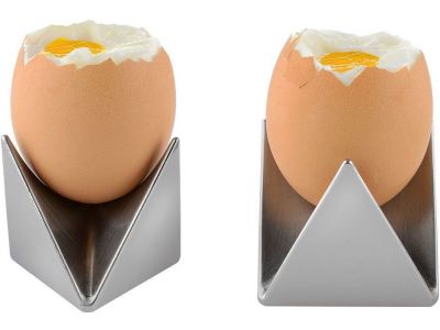 Dubbel eierdopje ‘Roost’, ontworpen door Adam Goodrum voor Alessi. Aluminium