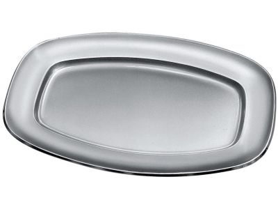 Ovale serveerschaal van 18/10 RVS mat met spiegelglans gepolijste rand.
