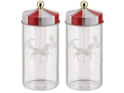 De set van twee kruidencontainers van de Alessi Circus-collectie: poëtische maar functionele objecten, perfect om alle versheid en het aroma van de kruiden die erin zijn opgeslagen te behouden.