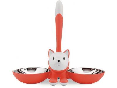 Kattenbak in thermoplastische hars, roodoranje en 18/10 roestvrij staal.