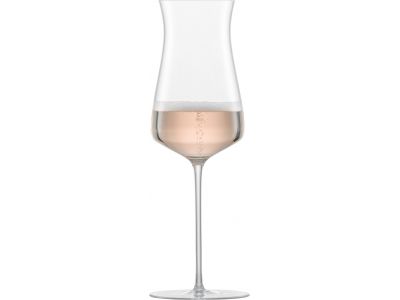 Met zijn gebogen glazen body en majestueuze hoogte oogt het mondgeblazen rosé champagneglas uit de serie The Moment van ZWIESEL GLAS buitengewoon elegant. De uitgesproken glazen lip duwt de specifiek lichtere kooldioxide naar buiten en de zware fructose naar het midden: de geur en smaak ontwikkelen zich bijzonder goed. De rosé champagne raakt de tong op een sappige en duurzame manier en biedt een onvergetelijke en langdurige smaakervaring.