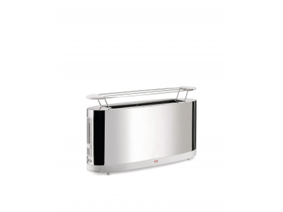 KITCHEN >> Broodroosters >> Alessi >> Toaster with bun warmer in 18/10 stainless steel mirror polished and PC, white. Suisse plug.