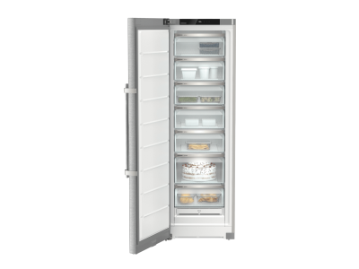 Deze roestvrijstalen NoFrost vrieskast hoeft u nooit te ontdooien en dankzij EasyOpen is de deur moeiteloos achter elkaar te openen en te sluiten. De SpaceBox biedt plaats aan extra grote verpakkingen en het invriesplateau is perfect voor het invriezen van vruchten en kruiden. Dankzij zijwandverwarming kan deze vriezer zonder kans op condensatieproblemen gecombineerd worden in een Side-By-Side opstelling. Geschikt voor smarthome toepassingen met optionele SmartDeviceBox.