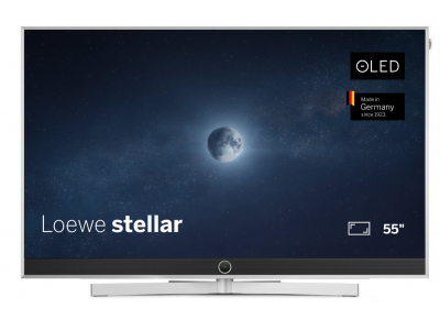 Le nouveau Loewe stellar est un téléviseur au design traditionnel issu du propre studio de design et d'innovation de Loewe. Il est composé de matériaux sélectionnés et authentiques tels qu'un cadre d'affichage en aluminium brossé en forme de losange, une fine grille de haut-parleur en métal peint par pulvérisation et une paroi arrière d'écran en béton véritable avec une structure aussi individuelle qu'une empreinte digitale. Toutes les connexions sont bien cachées et tous les câbles sont bien acheminés grâce au système de gestion des câbles intégré et aux cache-câbles dans l'armoire arrière gris clair.