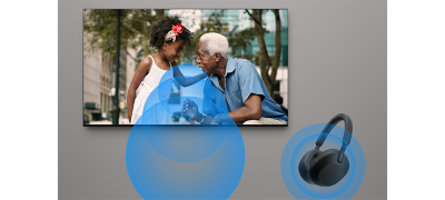 La sortie audio simultanée de notre téléviseur vous permet d'écouter une émission sur votre casque pendant que votre partenaire écoute la même émission grâce aux haut-parleurs du téléviseur. Vous pouvez également modifier le volume en utilisant des appareils Bluetooth séparément.