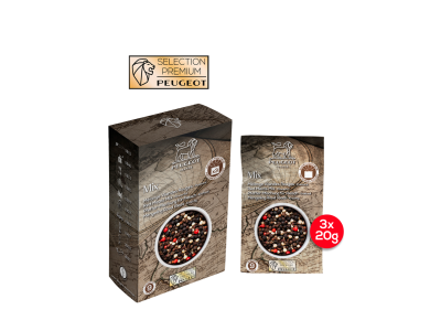 KITCHEN >> Peper & zout >> Peugeot >> Pepermelange voor rood vlees, 60 g - 3 vershoudzakjes van 20 g