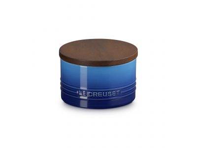 KEUKENTOESTELLEN >> Voorraaddoos >> Le Creuset >> Signature Voorraadpot in aardewerk met houten deksel 13cm 0,47l Azure
