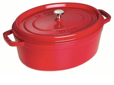 Staub wordt in Frankrijk geproduceerd en is hét merk voor gietijzeren kookgerei van hoge kwaliteit. Het grote voordeel van koken met de cocottes van Staub, specialist in geëmailleerd gietijzer, is dat uw ingrediënten hun voedingwaarde en volle smaak beter behouden. Het mat zwart afgewerkte email aan de binnenzijde vereenvoudigt bovendien het onderhoud van uw cocotte. Het platte deksel is uitgerust met picots zodat uw gerecht continu en gelijkmatig wordt bevochtigd, voor een nog sappiger resultaat. Omdat het de warmte uitstekend vasthoudt, is koken met gietijzer tevens zeer energiebesparend.
