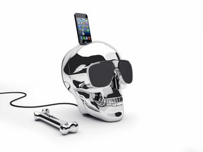 Een luidspreker die uit de toon springt klinkt misschien in eerste instantie niet echt veelbelovend, maar wees gerust: wat de prestaties betreft, deed de Franse luidsprekerfabrikant met deze AeroSkull geen enkele toegeving. Wat het item dan wel zo speciaal maakt, is z'n onconventionele vormgeving. Geen klassieke luidsprekerkast voor deze AeroSkull, maar in plaats daarvan een schitterende schedel (al is ie er ook in een matzwarte variant). Het resultaat is een performante speaker die met z'n design de aandacht naar zich toe zuigt, om nadien iedereen in de ruimte omver te blazen met een vol geluid over een breed spectrum. Het been dat bij de schedel zit, fungeert als afstandsbediening. Deze AeroSkull 'will blow your brains out!'