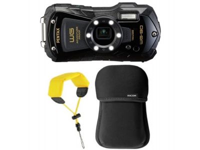 Deze Pentax WG-90 kit wordt geleverd met een Neopreen tas en een drijfriem voor om je pols.