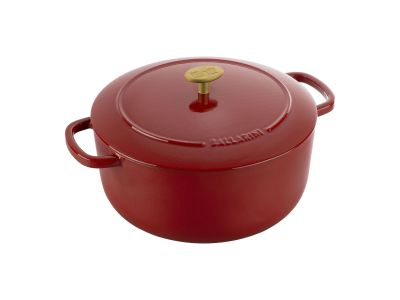 Hou je van de Italiaanse keuken en kook je graag voor familie of vrienden, dan zou je de BALLARINI Bellamonte cocotte met een diameter van 26 cm moeten hebben. De gietijzeren cocotte volgt de traditie van de Noord-Italiaanse "paiolo di ghisa", dat is het bereiden van vlees-, vis- en groentegerechten in gietijzeren kookgerei. De cocotte is gemaakt van gietijzer, een materiaal dat de warmte bijzonder goed en gelijkmatig geleidt. Door zijn speciale eigenschappen krijgen je in gietijzer bereide gerechten een intensief geroosterd aroma en een uitgesproken smaak - ook ideaal voor langzaam koken. Het aroma wordt nog versterkt door de druppelstructuur in het deksel. Deze structuur zorgt voor een bijzonder gelijkmatige vochtverdeling op de ingrediënten, wat resulteert in zeer malse en smaakvolle gerechten. De cocotte kan worden gebruikt op alle soorten fornuizen inclusief inductie en is vaatwasmachinebestendig en geschikt voor ovens tot 240 °C. De emaillaag is sterk en krasbestendig. Deze cocotte is ook een visueel hoogstandje, want ontworpen door de Milanese ontwerpers Matteo Thun & Antonio Rodriguez is het een blikvanger dankzij het uitgesproken design, de intens rode kleur en de matgouden knop met het Ballarini logo.