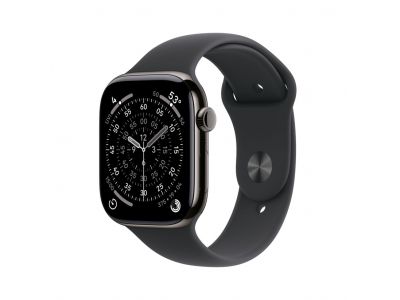 MOBILE / PORTABLE / GPS >> Smartwatch >> Apple >> Apple Watch Series 11 GPS + Cellular 46mm Slate Titanium Case with Black Sport Band - M/L