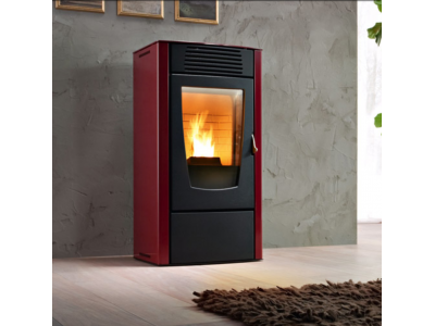 Eenvoudige, compacte kachel van 6KW die zowat overal kan geplaatst worden. strakke stalen zijpanelen en bovenblad. Deur in gietijzer. Eco stop functie.