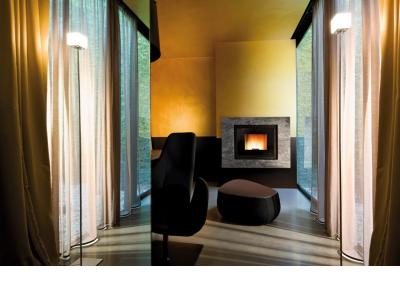 Pellet inbouw 22 Kw (18 Kw water). Draadloos muurbedieningspaneel met touch screen in optie.