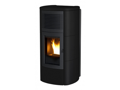 Pelletkachel met stalen structuur en keramische top en zijpanelen.  Gietijzeren branderbak, intelligent verbrandingssysteem met Active+.