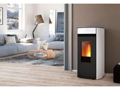 Pelletkachels met geforceerde ventilatie en met nachtfunctie om de ventilator uit te schakelen. Bekleding van staal, met dubbele designdeur. Mogelijkheid rookgasafvoer achter en zijkant. Digitale bediening, programmeerbaar, vanaf een afstand te bedienen, optionele afstandsbediening.