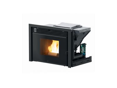 Inbouwhaard op pellets met een 70 cm brede voorzijde, geforceerde ventilatie, met een gesloten structuur en gietijzeren verbrandingskamer. Perfect om bestaande haarden, die niet erg efficiënt zijn of niet meer werken, te vervangen, maar ook ideaal voor nieuwe installaties, omdat het snel en eenvoudig te installeren is, zonder dat er veel werk thuis moet worden verricht.