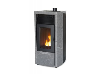 Pelletkachel gemaakt met een stalen structuur, een deksel en zijkanten in keramiek of Serpentino steen. Gietijzeren vuurpot. Intelligent verbrandingsbeheer met behulp van Maestro-technologie met dubbele Wi-Fi inbegrepen (Active + voor Hydro Matic-versies)