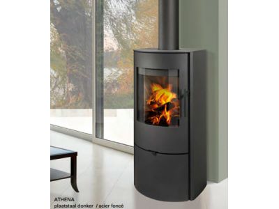 De Athena is een verfijnde kachel met een onopvallend ingewerkte houtopslag