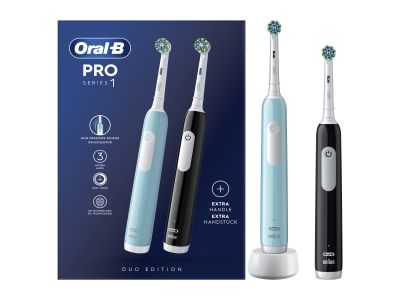 Ervaar de Oral-B Pro Series 1 van het nummer één meest gebruikte tandenborstelmerk door tandartsen wereldwijd. De Series 1 elektrische tandenborstel helpt u 2 minuten te poetsen met de professionele timer, zoals de tandarts dat aanbeveelt, en hij meldt u om de 30 seconden dat u een ander gebied moet poetsen. U beweegt de borstel gewoon in uw mond en de unieke, ronde borstelkop van Oral-B doet de rest. Hij verwijdert tot 100% meer tandplak dan een gewone manuele tandenborstel voor gezonder tandvlees en maakt uw glimlach witter vanaf de eerste poetsdag door oppervlakkige verkleuringen te verwijderen. De Oral-B Pro Series 1 met professionele timer is een geweldige tandenborstel voor iedereen die naar een elektrische tandenborstel wil overschakelen.