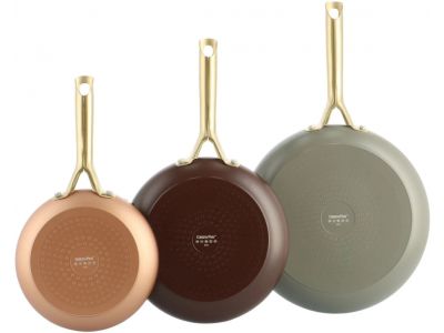 De pannen zijn voorzien van een geperforeerde inductiebodem die zorgt voor een gelijkmatige warmteverdeling, zodat je keer op keer een perfect resultaat behaalt. Bovendien zijn ze ovenbestendig tot 200°C, wat betekent dat je de bereiding gemakkelijk in de oven afwerkt. De set is verkrijgbaar in verschillende fijne kleurencombinaties, bijvoorbeeld Taupe, Pastelgroen en Marokkaans Groen, die een moderne en elegante uitstraling aan uw keuken geven.